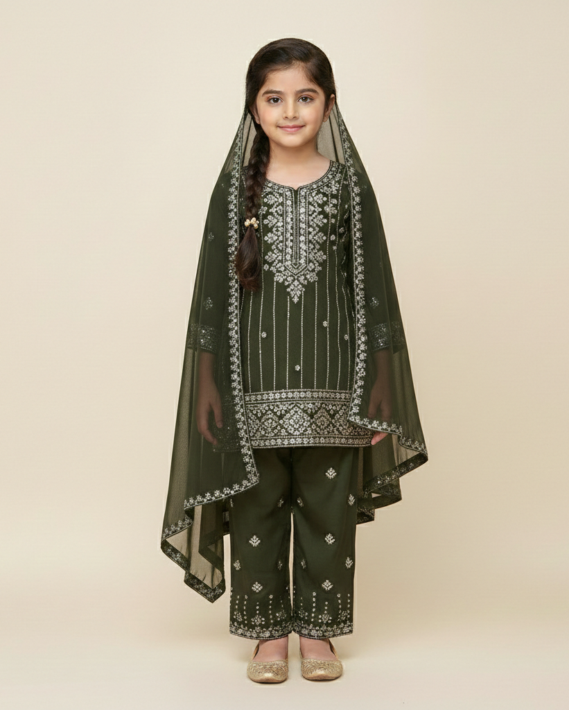 Angrakha Girl Suit Set is a beautifully handcrafted outfit perfect for special occasions like parties, weddings, or formal events.