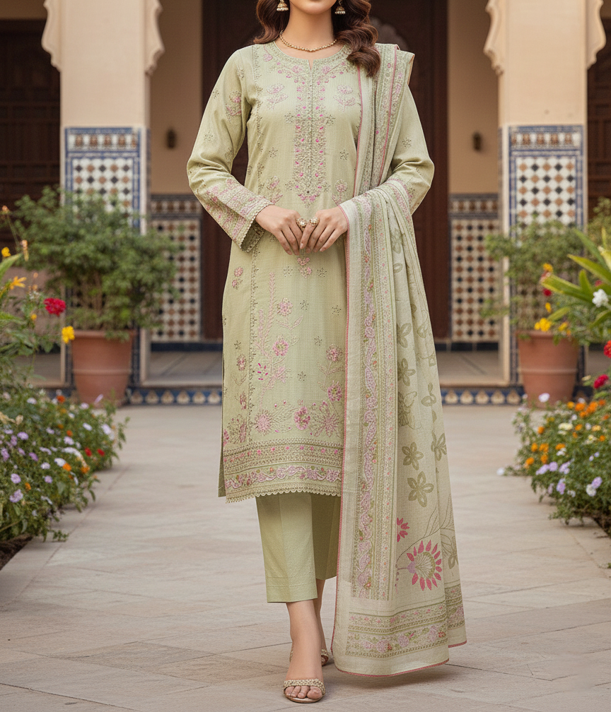 Pakistani 3 Piece Embroidered & Printed Suit – Women’s Eid Collection 2026