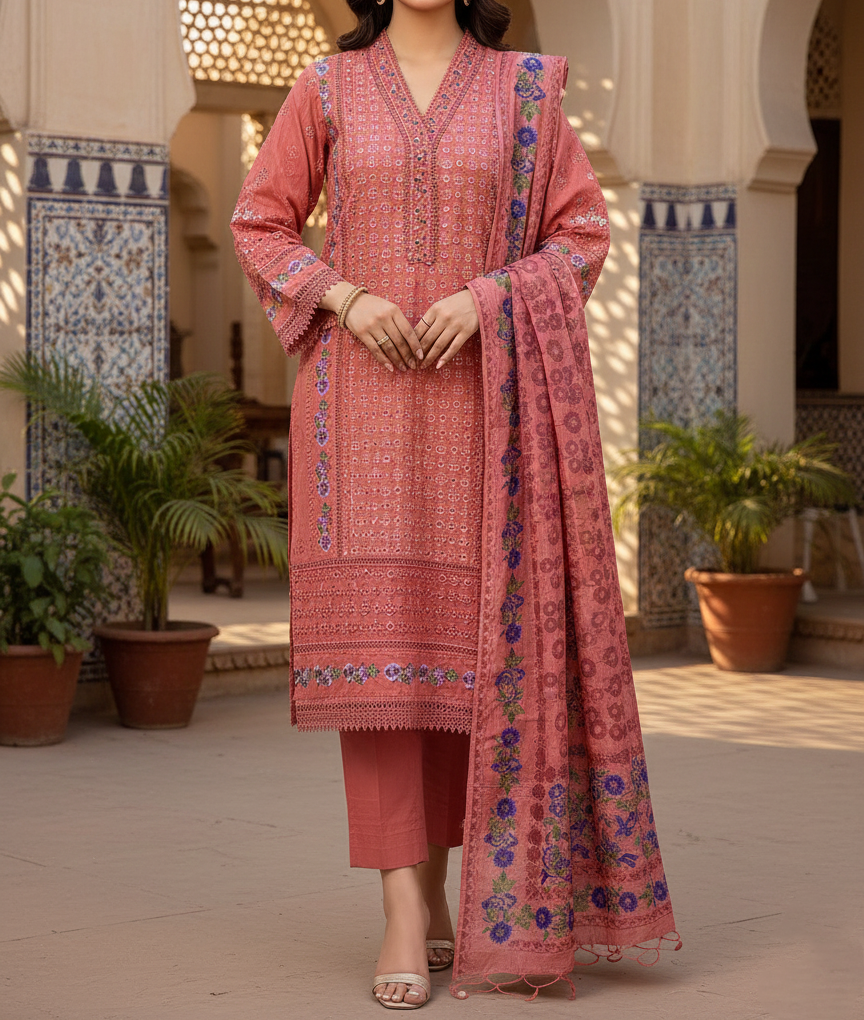Pakistani 3 Piece Embroidered & Printed Suit – Women’s Eid Collection 2026