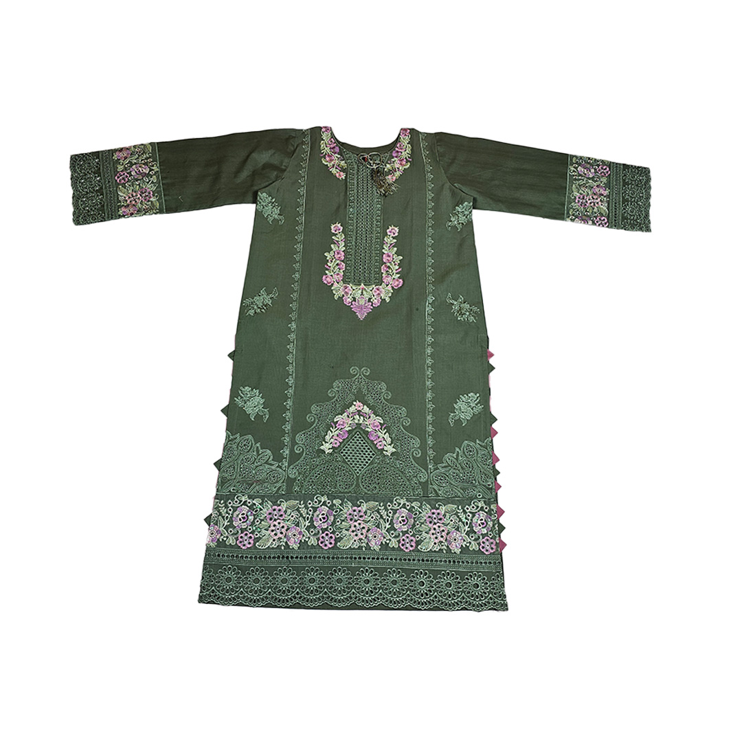 This 3 piece embroidered and printed suit is a stunning addition to any woman’s wardrobe, perfect for the Eid Collection 2026.