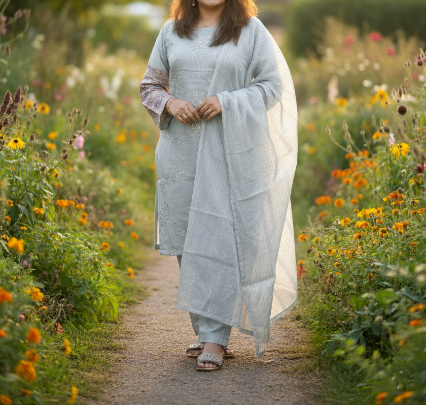 Made from high-quality cotton fabric, this suit is both lightweight and durable. It is recommended to hand wash only to maintain its beauty. This suit is perfect for the summer, spring, and winter seasons, and is a great addition to any wardrobe.